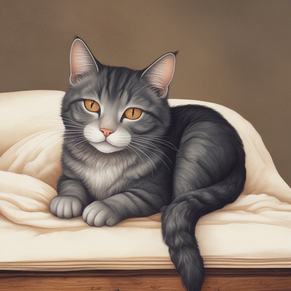 可愛い猫が眠っている姿を描いた絵本の挿絵です。